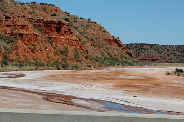 Here is a shot of the Little Red River. A lot of water can flow through here when needed. It is dry most of the year. The cliff on the left of the picture shows strata that were deposited during Permian times. A lot of rock and soil from these formations have washed down this river.