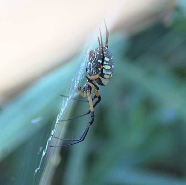 The last photograph shows another Argiope sp. perched on her refuge in the center of her web and the zig-zag silk structure known as the stabilimentum. A discussion of its function is found in Wikipedia here.